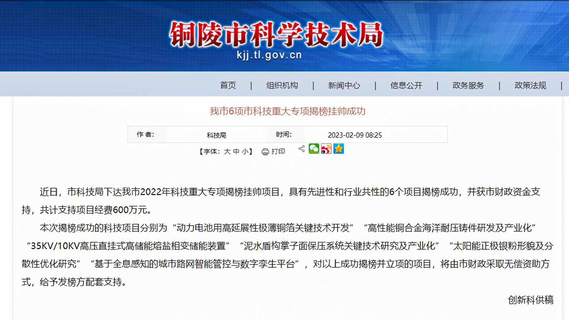 铜陵市科学课系统局批准市2023年新材料技术巨大工作方案揭榜挂帅创业项目流程 ,兼有较为先进性和职业共同性的6个创业项目流程揭榜顺利 。